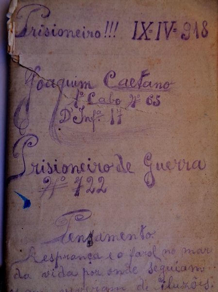 Diário inédito de prisioneiro português na Primeira Grande Guerra. Joaquim Caetano 1 cabo nº 65 de infantaria 17 Prisioneiro de guerra nº 722