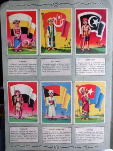 Faltam 81 de 128 Bandeiras e trajes de todos os países década de 50. Colecção Cultura - Agência Portuguesa de Revistas. Capa com manchas, interior razoável.
