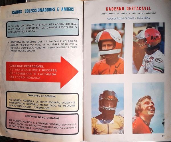 'Clube do cromo' - Revista corridas de motas. Edição Iberica Maio 1977. Colecção de cromos - 200 à hora: Números 67, 69, 97, 71, 115, 95, 156, 101, 155, 157, 159, 160, 132, 124 e 143. Usado com desgaste