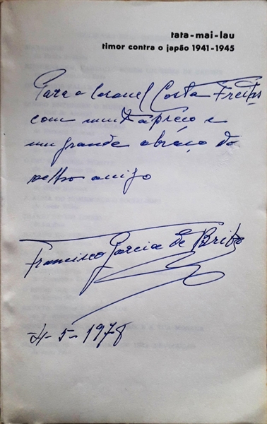 'TATA-MAI-LAU - Timor contra o Japão (1941-1945)' De Francisco Garcia de Brito Iniciativas Editoriais Lisboa 1977 296 páginas Com dedicatoria do autor. Bastante manuseado e com desgaste na lombada.