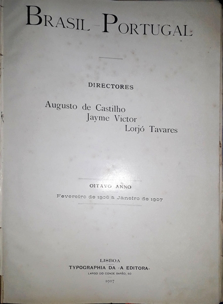 Ano: VIII Fevereiro de 1906 a Janeiro 1907 Directores: Jayme Victor; Lorjó Tavares; Augusto de Castilho Lisboa tipografia da " a editora " Tipo Documental: IMPRENSA 1907 Miolo Com alguma acidez