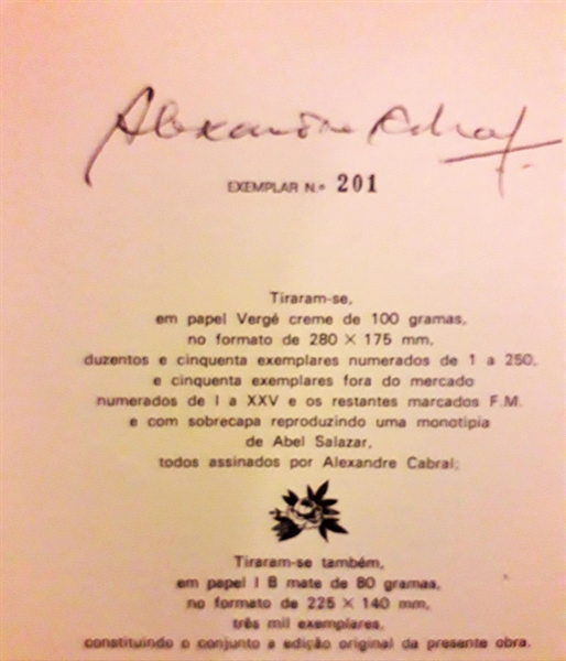 Exemplar FM, assinado pelo Alexandre Cabral Primeiro tomo.Biblioteca Camiliana. Novembro 1972. Exemplar número 201 de 250