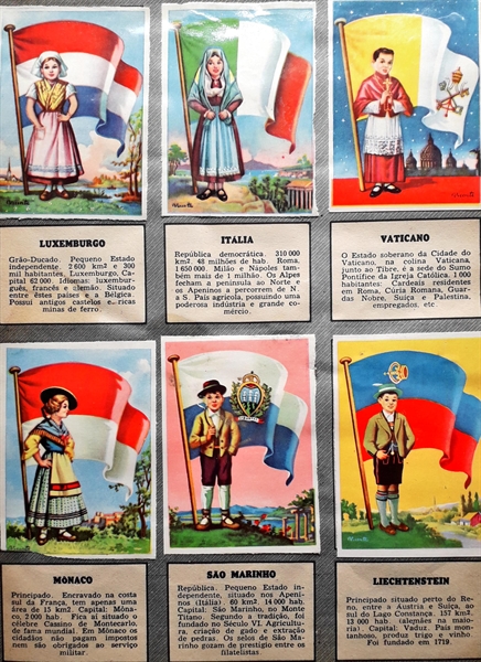 Falta o cromo número 71 Bandeiras e trajes de todos os países. Colecção figurinhas, EBAL, Lombada com rasgo, interior bom.