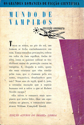 Autor: Richard Matheson Título original: I Am Legend 1ª Edição: 1954 Publicado na Colecção Argonauta em 1958 Capa: Lima de Freitas Tradução: Mário Henrique Leiria