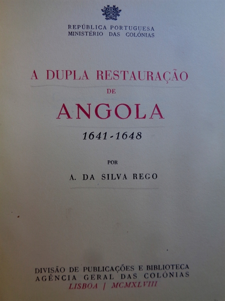 A DUPLA RESTAURAÇÃO DE ANGOLA : 1641-1648 / A. DA SILVA REGO